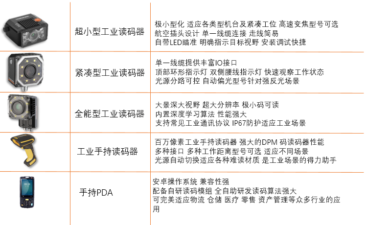 智能讀碼器系列產品包含固定式讀碼器,嵌入式讀碼模組和手持類產品體系全面。針對工業,物流,消費,醫療,3C等行業都推出了相應的產品,滿足了各個場景,各類讀碼需求。