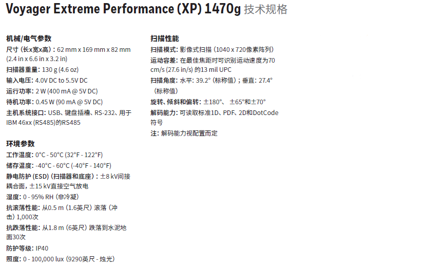 honeywell霍尼韋爾1470G二維掃碼槍有線型號提供 5 年保修,無線產品提供 3 年保修。霍尼韋爾1470G高度精確、快速地掃描破損和質量不佳的條碼,并延長掃描距離,無需彎腰即可掃描推車底部,避免在銷售點浪費時間。霍尼韋爾 Scanner Management Utility (SMU) 提供一種整體解決方案,讓您在應用環境中自動化部署和升級掃描儀。霍尼韋爾運營智能軟件可按需提供掃描的深入信息,提高員工生產率和通量。honeywell 1470G增強商店每天掃描的代碼性能,包括客戶智能手機上的數字優惠券、代碼和錢包,以及收銀臺上的商品代碼。